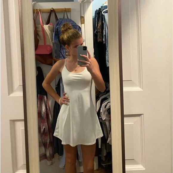 Designed with a flattering backless silhouette, this dress transitions seamlessly from activewear to everyday style. Whether you’re working out, running errands, or meeting friends, it’s the perfect blend of comfort and convenience.